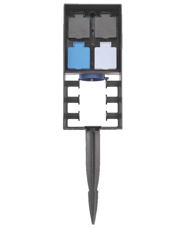 Einfach zu installierende Gartensteckdose InScenio FM-Master 3 für den ganzjährigen Einsatz inklusive Erdspieß und Fernbedienung mit bis zu 80 m Reichweite.