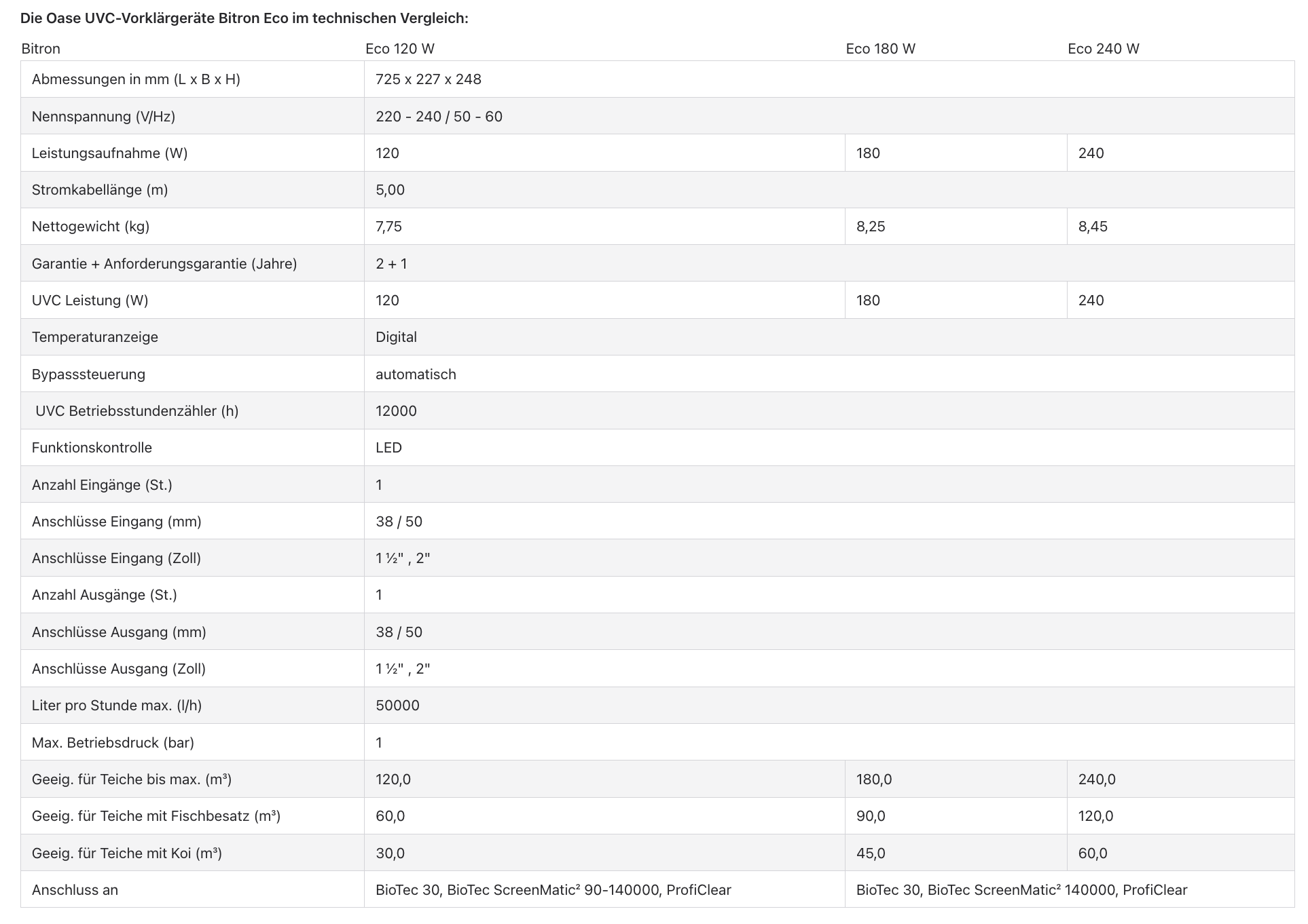 + Includes Oase clear water guarantee in conjunction with the Oase flow filters BioTec and ProfiClear