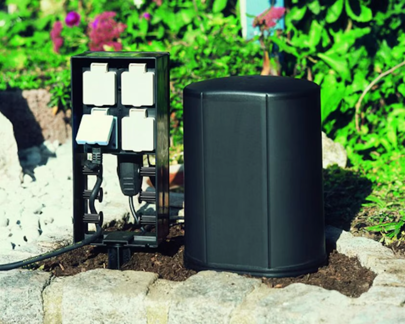 Die einfach zu installierende Gartensteckdose Oase InScenio 230 für den ganzjährigen Einsatz inklusive Erdspieß und ist durch ihr flexibles Baukastensystem auch für Laien einfach zu installieren und nachträglich simpel erweiterbar. Durch die Installation ganz ohne Erdarbeiten bietet die Oase InScenio 230 Gartensteckdose eine hohe Flexibilität und mit dem, im Lieferumfang enthaltenen, Erdspieß wird eine sichere Verankerung im Boden ermöglicht. Mit spritzwassergeschützten und zugentlasteten Steckdosen ist die Gartensteckdose für den ganzjährigen Einsatz geeignet. Die praktische Abdeckhaube ist bei der Oase Gartensteckdose InScenio 230 inklusive.