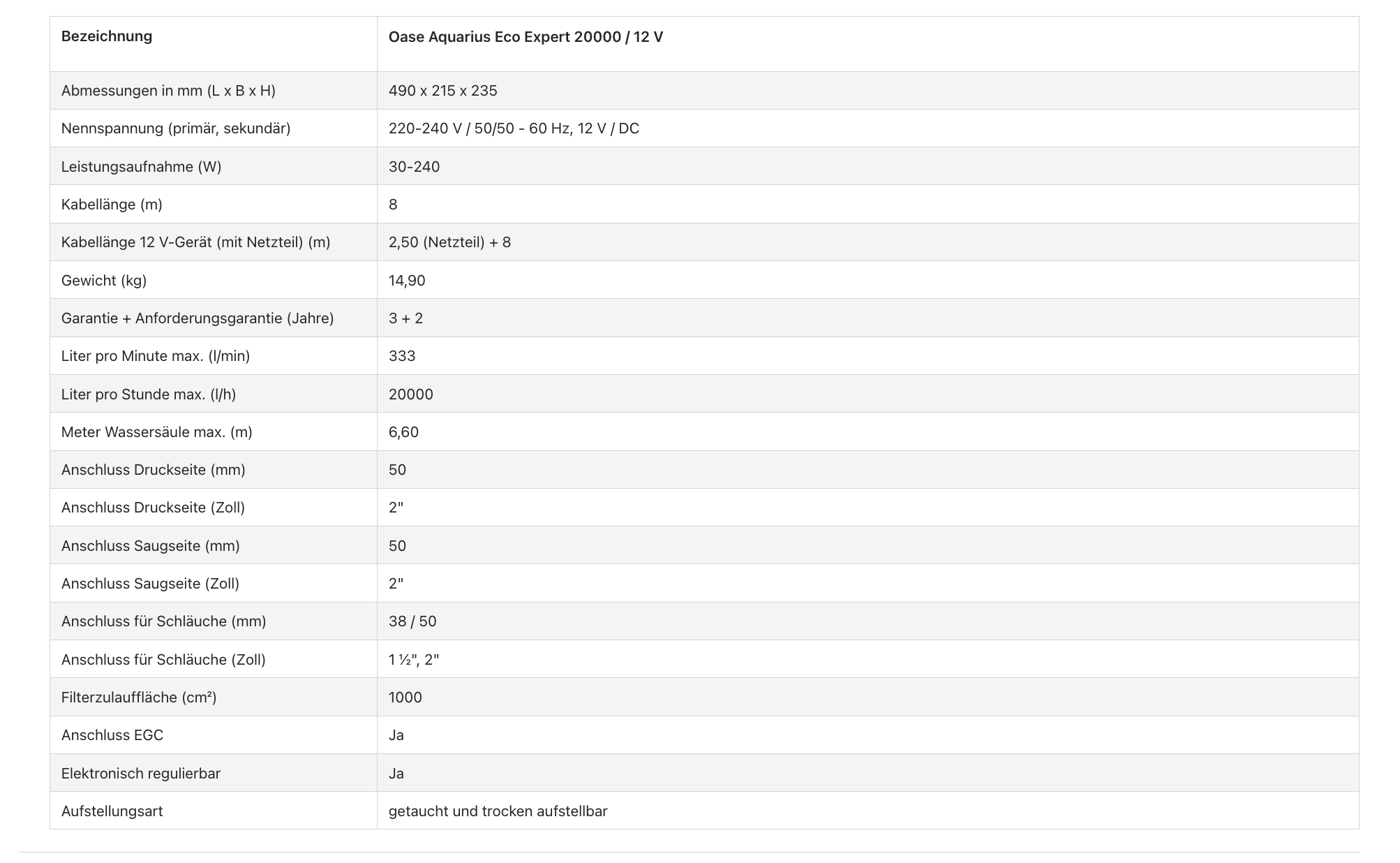 Oase Aquarius Eco Expert 20,000 / 12 V - 20,000/12V is backordered and will ship as soon as it is back in stock.