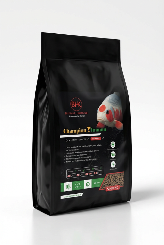 BHK Champion Immun sinking ist ein sinkendes Koifutter zur gezielten Unterstützung der natürlichen Abwehrkräfte. Die ausgewogene Rezeptur mit Beta-Glucan, Kräutern und hochwertigen Proteinen stärkt das Immunsystem der Koi und fördert ihre Widerstandskraft in Phasen erhöhter Belastung.
