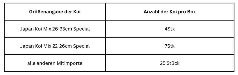 Ab der 3. angefangenen Woche: 2,00 € pro Koi